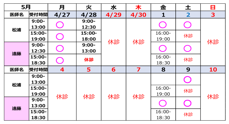 患者様にはご不便をお掛けいたしますが、何卒 宜しくお願い申し上げます。